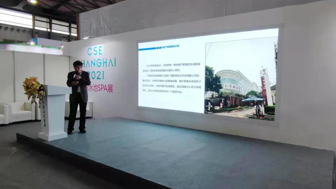 曹總在CSE論壇,進行了房地產(chǎn)配套泳池系統(tǒng)案例分享。