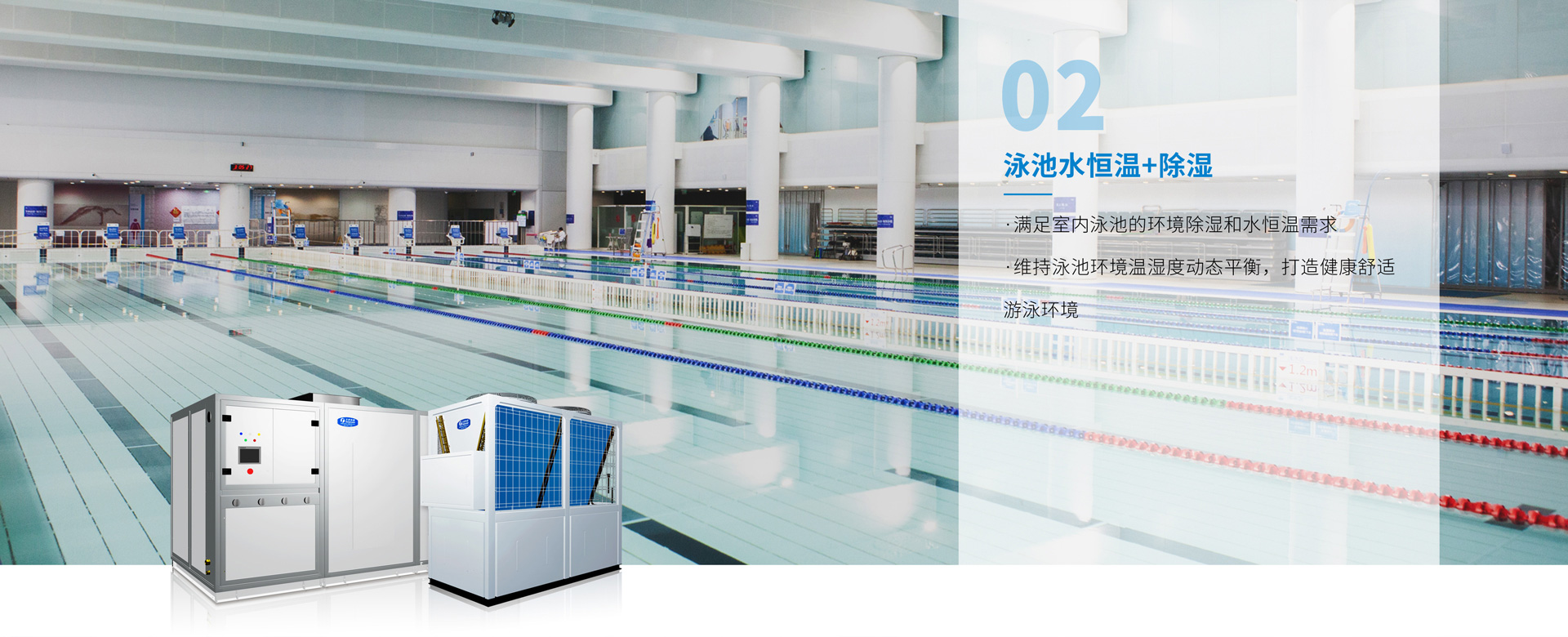 體育館需要舉行各類賽事,對觀眾和運動員來說,館內美觀舒適度尤為重要,天舒泳池熱泵系統維持游泳環境溫濕度動態平衡,創造健康舒適美觀的環境。