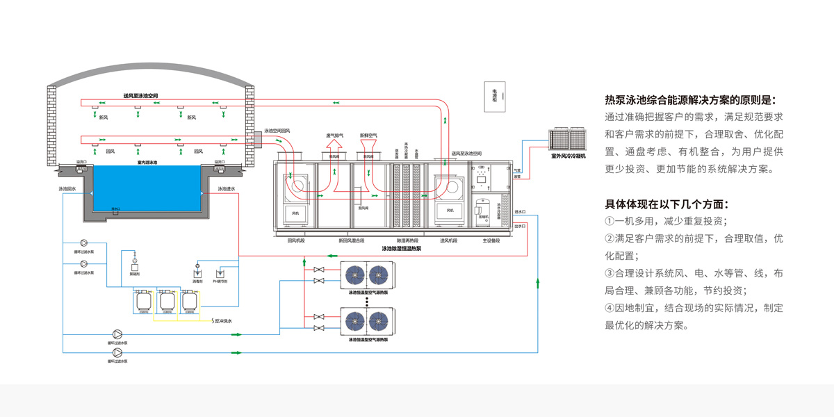 溫泉池大多是露天的,需要根據(jù)每個(gè)溫泉池的大小和溫度要求,結(jié)合當(dāng)?shù)丨h(huán)境的天氣狀況,制定系統(tǒng)能源解決方案,兼顧溫度與能效,打造高效節(jié)能的溫泉場所,減少運(yùn)行成本。